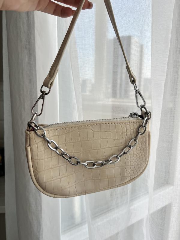 Сумка багет Цвет: бежевый Размер: Ширина18см, Высота 10см Есть две ручки, короткая и длинная Из нюансов на последнем фото серая задержка
