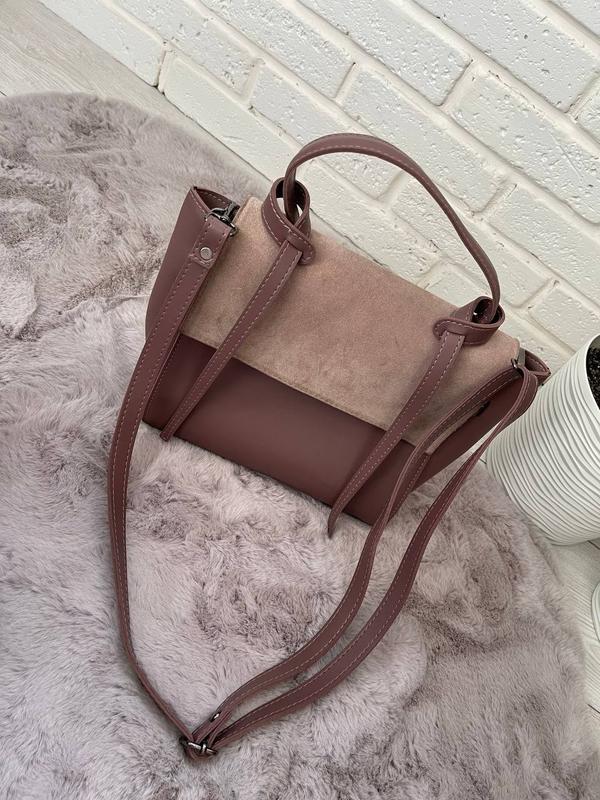 Эко кожа и Эко замша употреблена, есть мелкие потертости на замше, размеры 25 на 9 высота 23