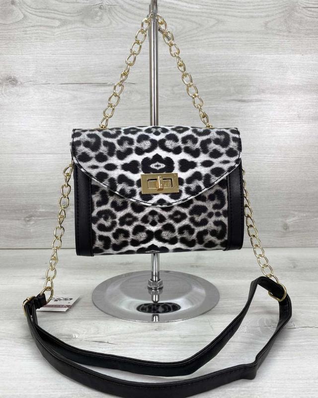 РАЗМЕР маленький МАТЕРИАЛ эко-кожа ЦВЕТ черно-белый ЖЕСТКОСТЬ средняя ТИП ЗАСТЕЖКИ клапан ОТДЕЛЕНИЯ 1 отделение ПЛЕЧЕВОЙ РЕМЕНЬ есть ДЛИНА 19 см. ШИРИНА 8 см. ВЫСОТА 15 см.