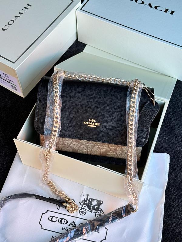 👜 Coach Mini Klare Crossbody in Signature Canvas in Purse (Арт: 99025) 💵 3800 грн 📐 Розмір: 21 х 15 х 8 см 🧵 Матеріал: Шкіра 🔎 Опис: Сумка виготовлена з якісної шкіри з фірмовою канвою. Усередині три великих відділення, одна невеличка кишеня, та же одна на застібці. Підкладка всередині текстильна, приємна на дотик. Фурнітура металева, брендована. Золотистий ланцюжок регулюється як для носіння через плече так і у руці, ручка з натуральної шкіри. Комплектується у брендованій коробці на магнітах та пильовику, також є брендовий пакетик, бірки.