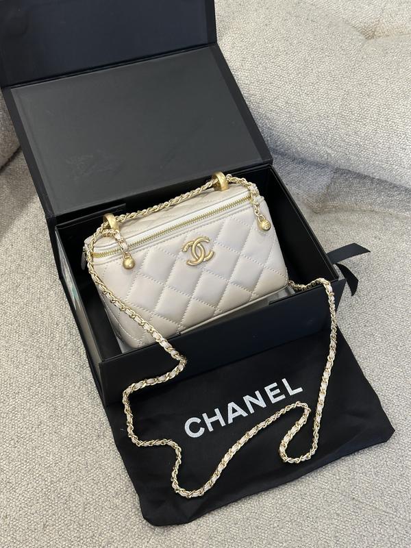 Арт: 99811 | 3580 грн | Размер: 17 х 11 х 8 см | Материал: Кожа Сумка выполнена из гладкой кожи, прострочена. Внутри одно небольшое отделение, есть еще более небольшой карман. Подкладка из плотного текстиля. Для ношения через плечо есть длинная тоненькая цепочка с вплетенной кожей (не отстегивается, регулируется по длине благодаря оригинальному механизму). Комплектуется в фирменной коробке на магнитах и пыльнике, также есть буклеты.