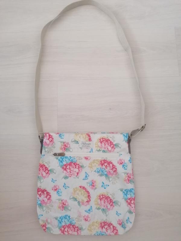 Замеры на фото, на кнопке, длина ручки регулируется, качественная подкладка, состояние новой.