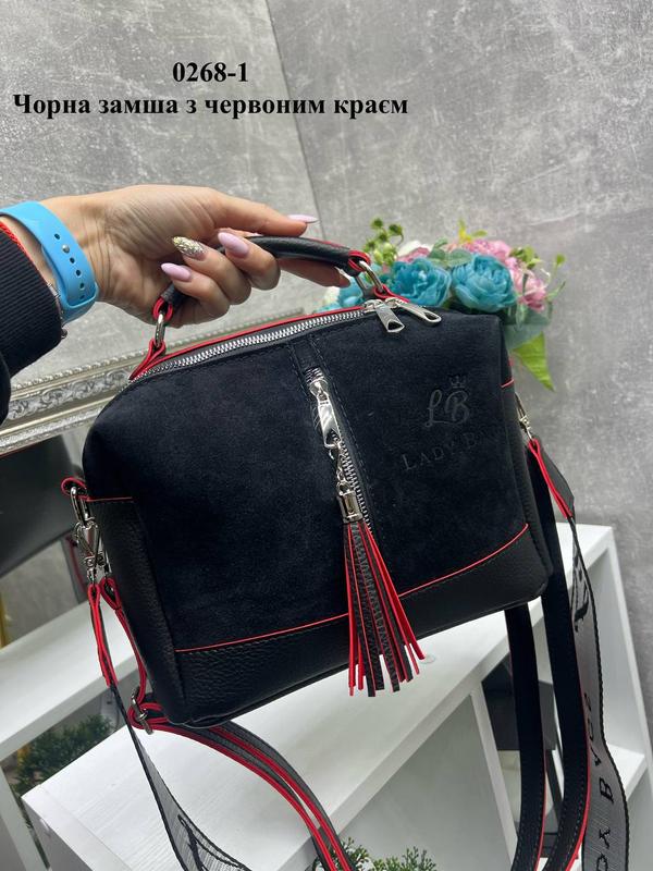 Топова 🔝🔝🔝модель из нашего лого теперь и в замше ✔️ Код 0268-1. Нат.замша/Штическая кожа. Украина 27 см ширина. 18 см высота. 13 см глубина. Два отделения на молнии. Внутри открытый карман и карман на молнии. На лицевой и обратной стороне карманы на молнии. В комплекте два съемных ремня. Длина тканевого ремня 100 см, ширина 4 см. Максимальная длина ремня из искусственной кожи 150 см.