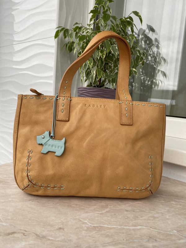 Сумка из натуральной кожи от бренда Radley Есть незначительные следы носки В целом состояние хорошее Размер 30 х 22 х 5 Длина ручки 14 см