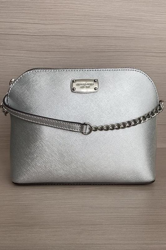 Брендовая кожаная сумочка кроссбоди Michael Kors, Натуральная кожа. Серого цвета,украшена металлической фурнитурой. Одно основное отделение. Размер 22/17/9 Смотрите все мои объявления,много брендовых вещей,обуви и сумок.