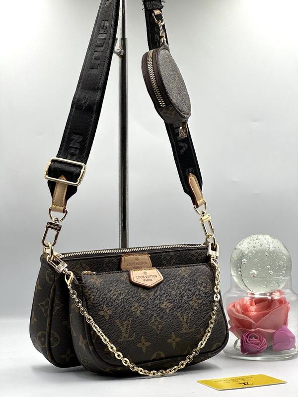 Женская сумка 3 в 1 коричневая буквы, сумка с кошельком, сумка 3 в 1, сумка в стиле louise...