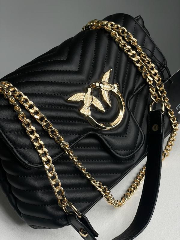 👜 Black Gold (Арт: 08004) 💵 1630 грн 📐 Размер: 24 x 16 x 8 см 🧵 Материал: Эко Кожа 🔎 Описание: Сумка выполнена из эко кожи с прострочкой. Фурнитура металлическая, застежка на магните. Внутри два больших отделения на брендовой подкладке и между ними – отделение на молнии. Ремешок - это золотая цепь с кожаной ручкой и фирменным тиснением Пинко длиной 114 сантиметров.