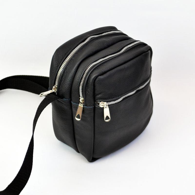Качественная мужская сумка - мессенджер из натуральной кожи на 4 кармана с серебряной и черной молнией. Характеристики: Выполнена из высококачественной натуральной кожи флотар черного цвета. Объемная и вместительная – идеально подходит для повседневного использования. Четыре основных кармана на надежных замотках для организации вашего имущества. Качественная металлическая фурнитура и регулируемый ремень для удобства и долговечности. Размеры: высота – 22 см, ширина – 17 см, толщина – 11 см. Перед заказом уточняйте наличие.