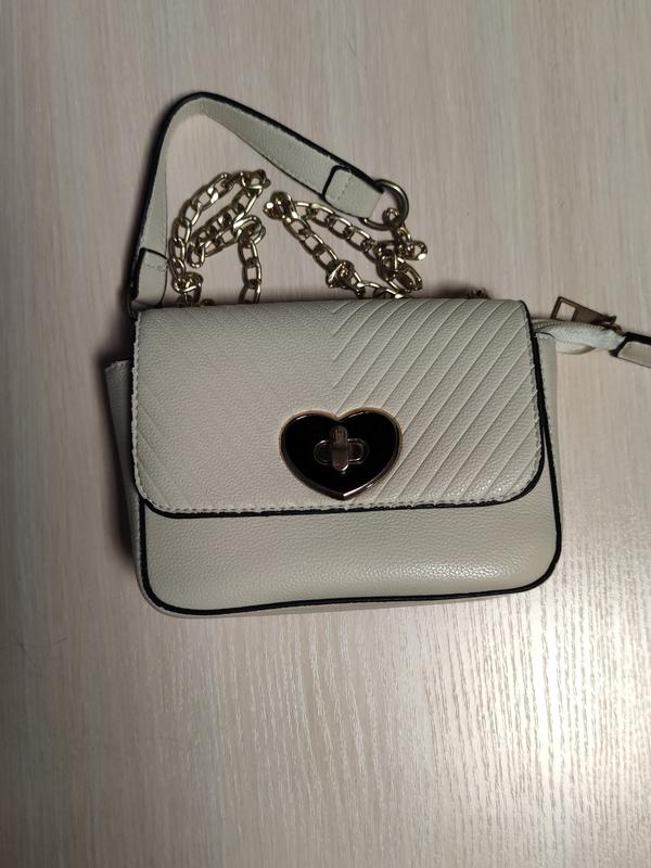 Маленькая компактная сумочка молочного цвета.