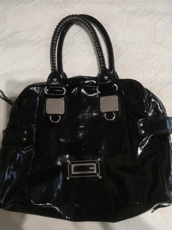 шикарная сумка лаковая кожа ширина 47, высота 33 см, дно 10 см, ручки 54 см, есть карманы в середине сумки, один на замке, один на кнопках и три обычных, следов носки почти нет, чуточку на ручке