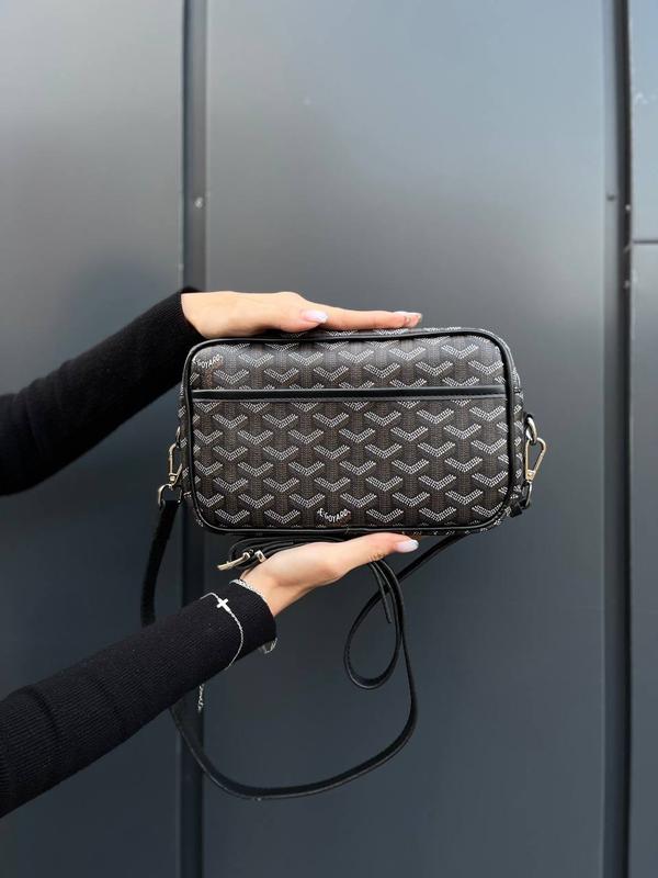 Goyard crossbody bag black/brown [ арт 2201 ] 📎Матеріал - еко- шкіра 📎Розмір : 25*15*8 📎 Сумка виконана з еко-шкіри. Всередині один відділ. Підкладка текстильна, є кишеня, та лого бренду. Спереду є карман для карток. Ремінець з еко-шкіри, довжина регулюється до 120 см 📎Безкоштовне пакування : звичайна крафт коробка, папір