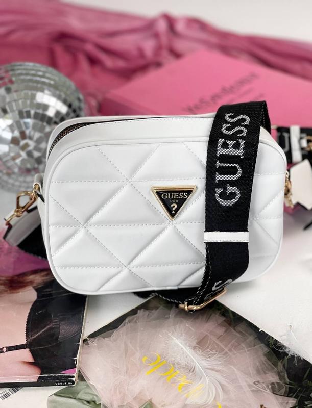 Guess Simple Bag White Размеры: 22 х 17 х 8 см Материал: эко кожа Люкс качество! Сумка выполнена из гладкой эко кожи. Внутри одно сплошное отделение с маленьким кармашком. Сумка имеет брендовый регулируемый и подключаемый к сумке карабинами. Бесплатный комплект: брендовая коробка + упаковочная бумага. Платный комплект +160 грн: брендовый пакет, пыльник и набор документов.