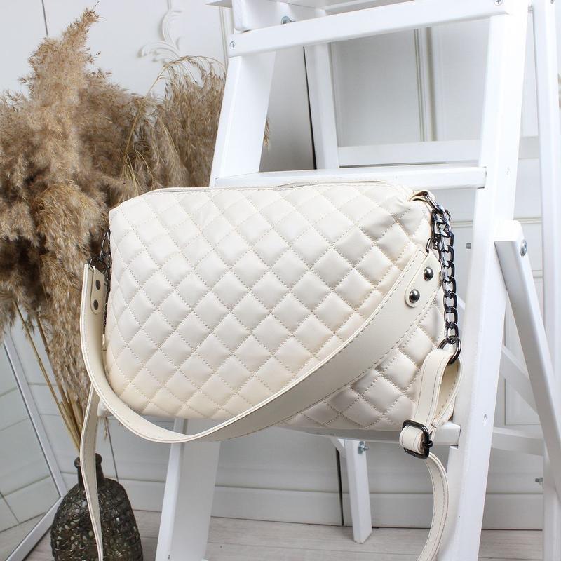 Новинка 🔥🔥🔥 Код Д234 Цвет: молоко. Параметры: высота 19 см, ширина по дну 31 см, ширина вверху - 27 см, дно 11 см. Длина ручки (без карабинов) 44 см, длина ремня регулируется до 120 см. Материал: эко кожа. Особенности: два отделения, в середине открытый карман на молнии. С тыльной строчки карман на молнии.