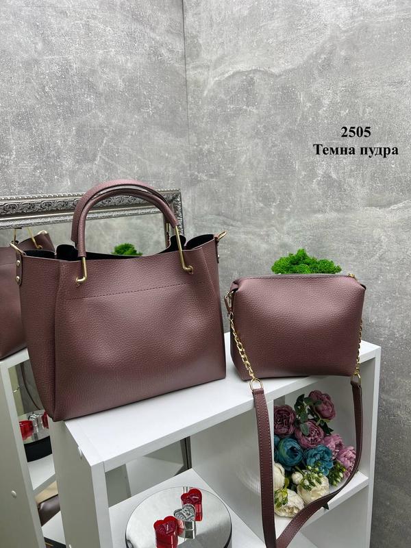 Комплект: сумка + клатч. Искусственная кожа. 26 см ширина по дну. 31 см ширина вверх.25 см высота. 15 см глубина. Длина ремешка 115 см. Одно отделение на молнии, внутри клатч. Размер клатча: 18х18х10 см ⚠️В КОМПЛЕКТІ ЛИШЕ ОДИН РЕМІНЬ⚠️