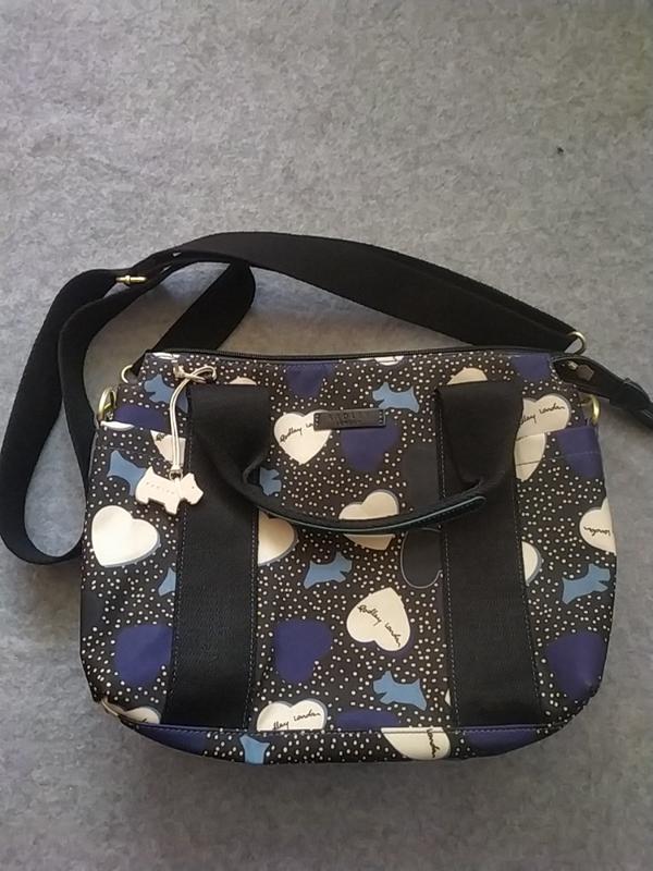 Пропоную сумку відомого улюбленого бренду Radley. Стан нової. Виміри: висота 25 см, ширина 33 см, дно шириною 10 см. Матеріал 100 % котон з пропиткою.
