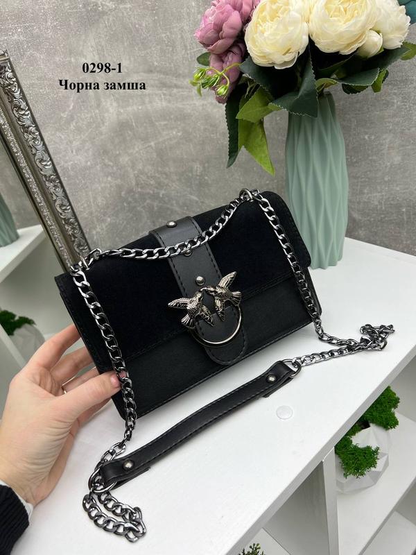 Код 0298-1. Нат.замша/Экокожа. Сделано в 💙💛. 23 см ширина. 14 см высота. 8 см дно. Клапан на магнитах. Внутри одно отделение, подоленое пополам карманом на молнии. Длина цепочки 130 см