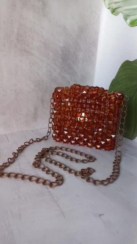 Сумка ручної роботи з квадратних намистин. Колір -карамель. Застібка- магнітна кнопка