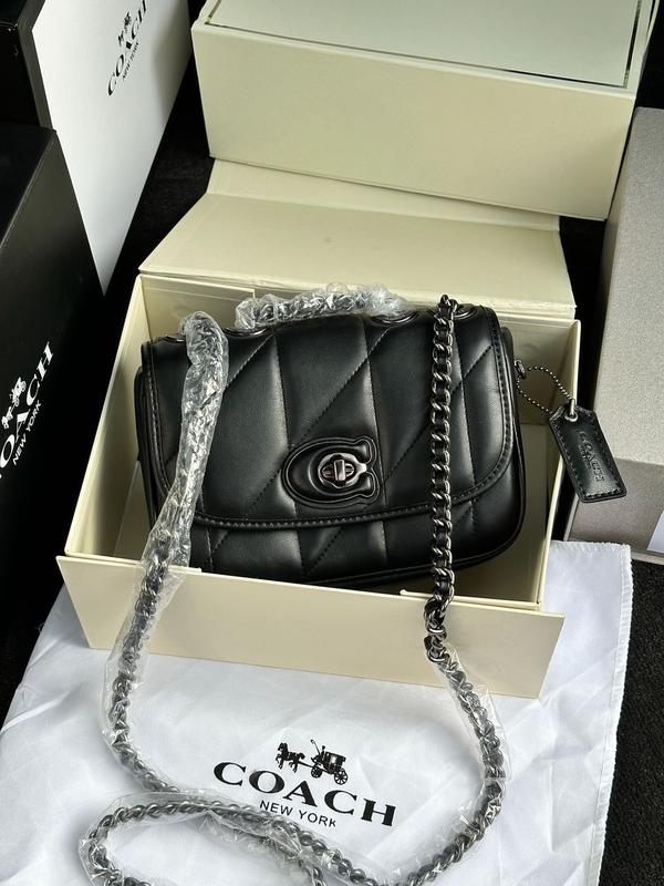 👜 Coach Quilted Pillow Madison Shoulder Bag Black (Арт: 99071) 💵 3490 грн 📐 Размер: 20 x 14 x 7.5 см 🧵 Материал: Кожа 🔎 Описание: Сумка изготовлена из качественной простроченной кожи, очень мягкая и приятная на ощупь. Внутри одно большое отделение, также есть карман на застежке и без. Подкладка внутри из гладкой кожи. Качественная металлическая фурнитура, брендированная. Серебристая цепочка имеет вплетенную кожу, регулируется по длине как для ношения через плечо, так и в руке. Комплектуется в брендированной коробке на магнитах и пыльнике.