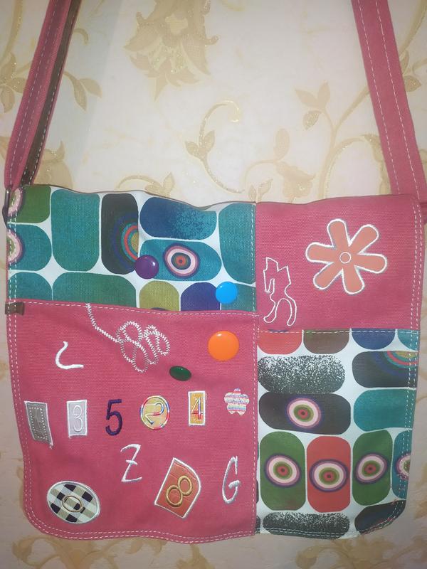 Продам сумку, рожевого кольору. Тканина типу брезент. Размеры: длина 30 см, высота 25 см, глубина 9 см.