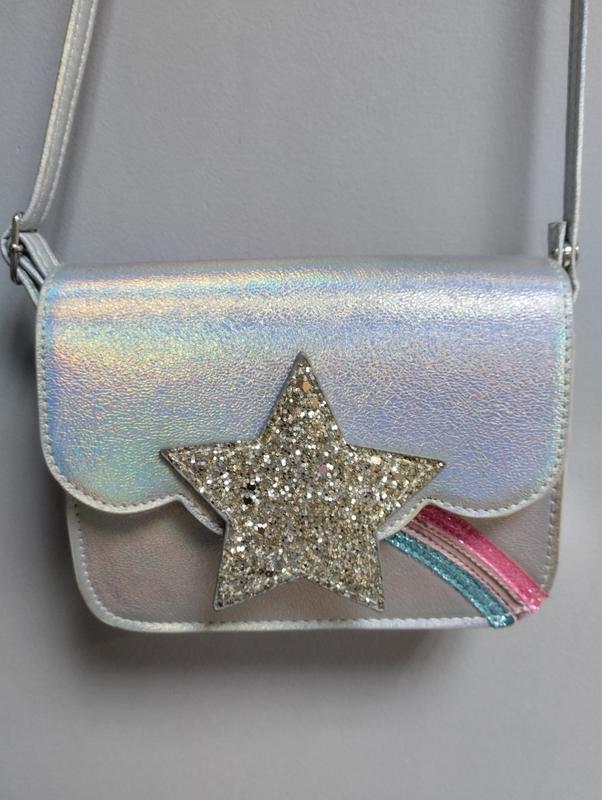 сумка, серебристого цвета внутри имеет одно отделение. Высота 13, ширина 16, ширина боковой части 4, длина ремешка 100. Ремешок регулируется по длине.