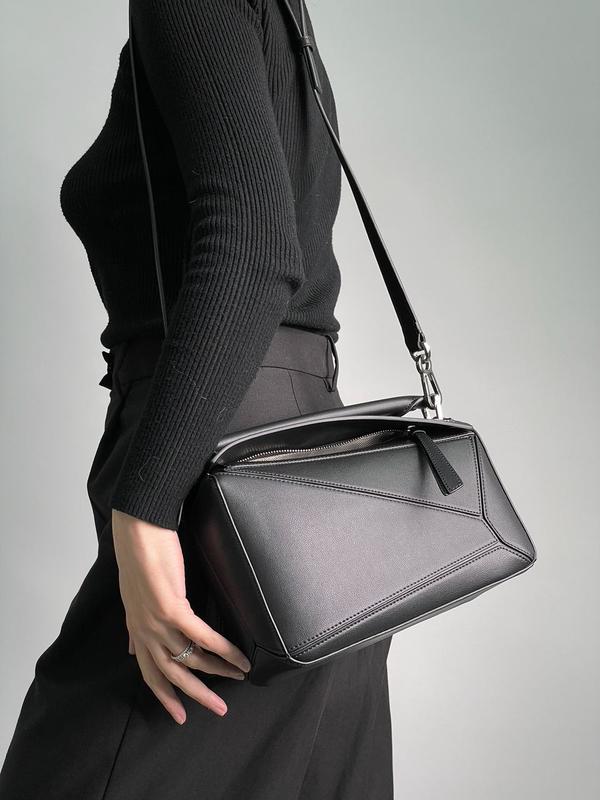 👜 Loewe Small Puzzle Bag in Classic Calfskin Black (Арт: 99092) 💵3650 грн 📐 Размер: 25 x 16 x 10 см 🧵 Материал: Кожа 🔎 Описание: Сумка собрана из частиц гладкой кожи в виде пазла. Внутри одно отделение, также есть небольшой карман. Подкладка из плотного тикстиля с кожаной нашивкой и тиснением. Качественная металлическая фурнитура. В комплекте два ремешка: Кожаный узкий и Текстильный шире. Оба имеют регулируемую длину.