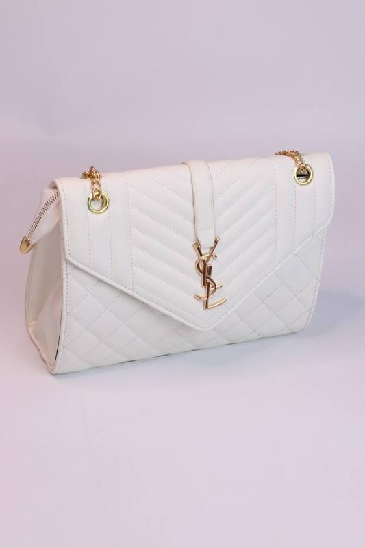 Размер: 28х21х8 💎Материал: Эко кожа Сумка Ив Сен-Лоран изготовлена из качественной эко кожи, имеет одно основное большое отделение, которое застегивается на молнию. В середине есть маленький карман. Подкладка из эко кожи. Плечевой ремень - цепочка со вставкой из эко кожи, длиной 120 см, который можно носить вытянутым во всю длину, или составленным в два раза. Фурнитура золотистого цвета. Упаковка: брендовая коробка, бумага, наполнитель, наклейка.