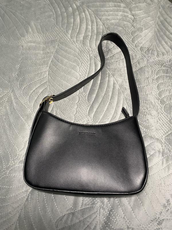 Сумка багет -регулируемый ремешок -вместительная -элементы золотого цвета -застежка молния -имеет один основной отдел, один скрытый на молнии и один кармашек Состояние: 4/5 (точка потертый ремешок, на фото видно)