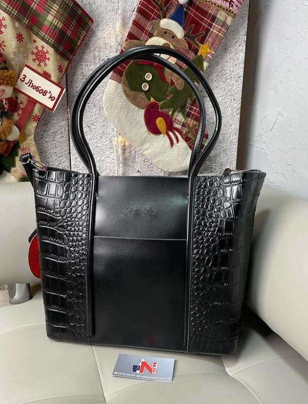 Выполнена из натуральной плотной кожи. Закрывается на молнию. Внутри находится двойное отделение, разделенное карманом-перегородкой на молнии, двойной открытый карман и карман на молнии. На фасаде имеется открытый карман, а на обратной стороне расположен карман на молнии. Жесткое дно на металлических ножках. В комплекте регулируемый плечевой ремень. Размер (см) 38*28*13 высота ручек 21 см.