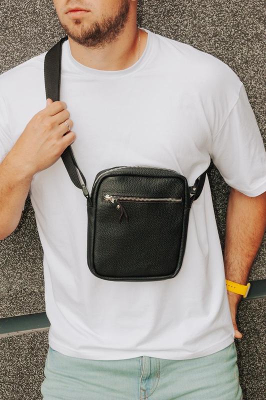 Материал: натуральная кожа Регулируемый плечевой ремешок Застежка-молния Мягкий на ощупь материал 3 внешних кармана на замке 1 внутренний карман на замке Высота: 24 см Ширина: 19 см