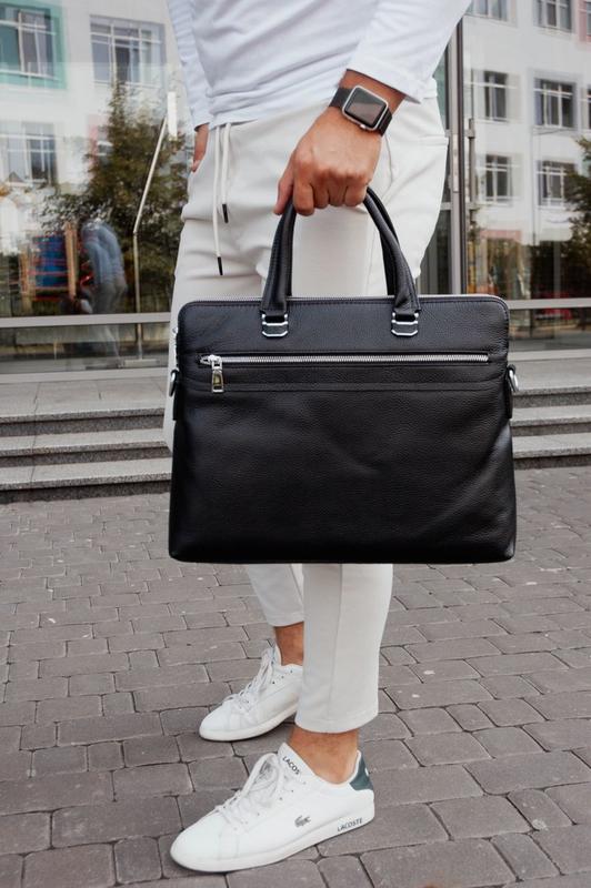 Натуральная кожа В комлпекте ремешок 2 основных отделения 1 дополнительное отделение 1 карман на молнии в середине 1 Перегородка всередині для ноутбука/речей Дополнительные 2 небольших кармана внутри Размеры 38.5 х 30 х 6 см