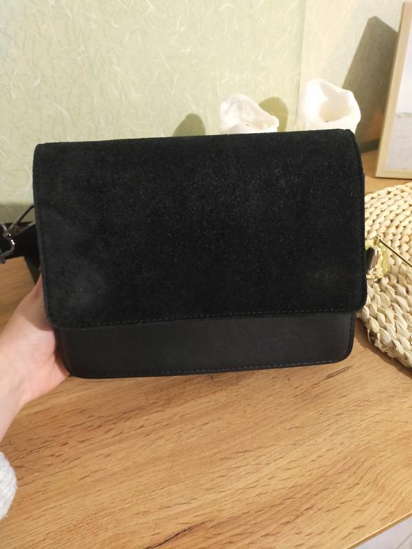 продам сумочку, в красивом состоянии, из эко кожи, верхняя часть сумочки из натуральной замши, размеры сумочки можете увидеть на фото, достаточно вместительная, длина ремешка около 1 м, не регулируется