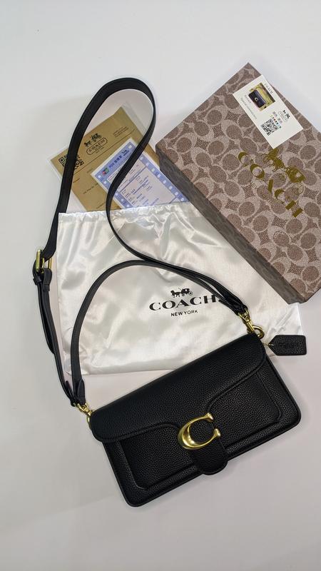 D0151 • Coach Tabby bag Прямоугольная сумочка из коллекции Coach черного цвета. Застежка модель выполнена из эко кожи премиум качества. • Отделение застегивается на магните; • Модель с двумя отделениями; • Сзади и спереди есть карманы без застежки; • Имеет съемную ручку и съемный регулируемый ремень; - Длина ручки: 49 cm. - Глубина: 7,5 cm. - Высота: 14,5 cm. - Ширина у основания: 25,5 cm. Состав: 100% премиум эко кожа, подкладка ✔️ В комплекте бирка с лого, брендовый брючин и коробка, документы.
