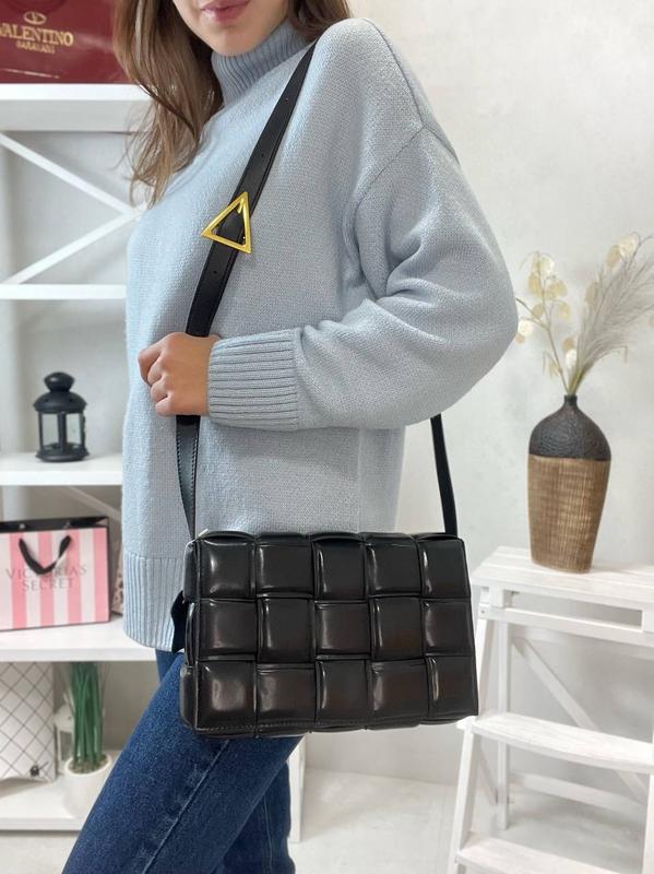 828549 Новинки ❤️🔥 Сумка Боттега плетіння шкіра Розмір: 24/15 Матеріал: натуральна шкіра (зразок шкіри на бирці ✅) Колір: чорний ремінець регулюється шкіра