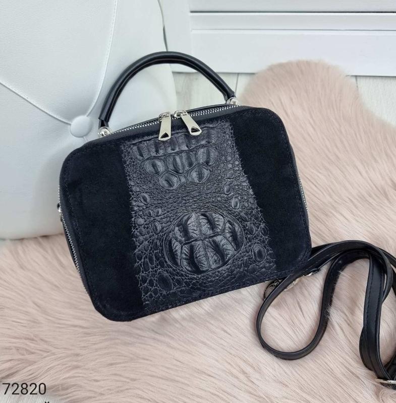 Очень стильный КАРКАСНЫЙ клатч кросс боди с ТИСНОМ РЕПТИЛИИ на НАТУР.ЗАМШИ ФУРНИТУРА: серебро РАЗМЕРЫ: Ширина - 21 см, высота - 16 см, дно - 8 см + ручка и длинный ремешок, регулируется МАТЕРИАЛ: ТИСНЕНИЕ РЕПТИЛИЯ на НАТУР.ЗАМШИ + ЭКО кожа!! Подкладка - плотная тканина СОСТАВ: Два отдела и между ними карман-перегородка на молнии, сверху сумка закрывается на 2 молнии. Внутри есть открытый карман и карман на молнии. Отправка по Украине новой и укрпочтой . Есть наложенный платеж по предоплате за доставку !
