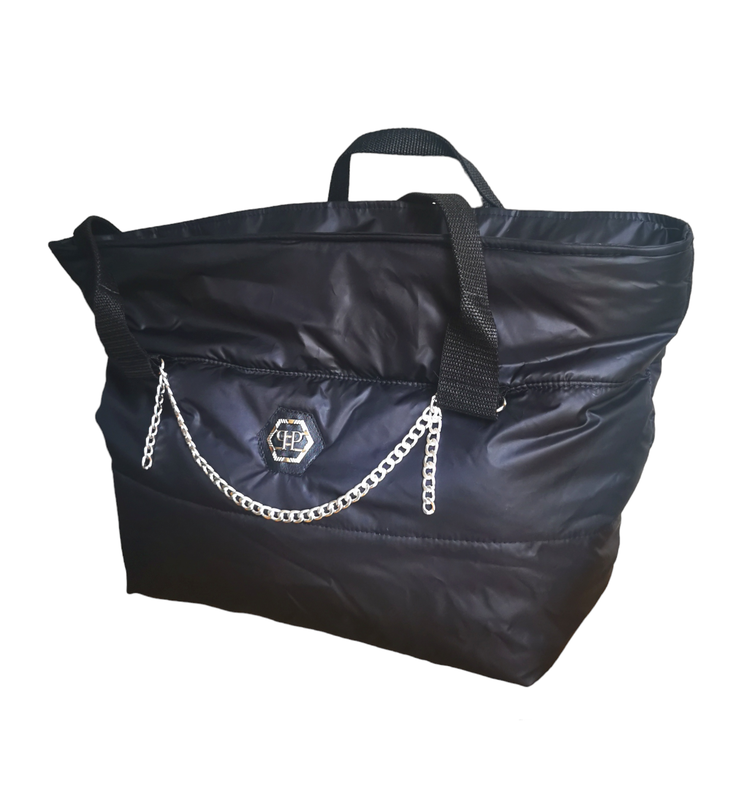 Стеганая сумка из плащевки. Зручна. Черная. Ширина 44см Высота 29см Дно (мягкое) 14см Ручки от края до края 80см Возможно +-1/2см Застегивается на молнию. Имеет одно большое отделение и есть небольшой открытый карманчик сбоку. Пожалуйста перед заказом уточняйте наличие.