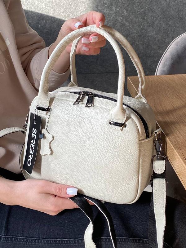 Serebro Art: 2 1170 Материал: кожа Размер: 18*24*10 см Цвет: молочный, черный В комплекте съемный плечевой ремень Производитель: Украина 🇺🇦 Стоимость 1100 грн
