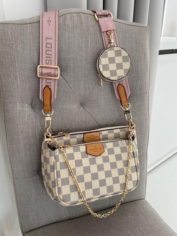 👜 Louis Vuitton Pochete Multi Ivory Pink (Арт: 01025) 💵 Цена: 1590 грн 📐 Размер: 23 х 16 х 5 см 🧵 Материал: Эко Кожа 🔎 Описание: Сумочка выполнена из экокожи с фирменной канвой лв. Широкий пояс розового цвета из текстиля регулируется от 82 сантиметров до 117 см. Также на поясе есть небольшой круглый кошелек на молнии для разной мелочи. Декоративная цепочка на карабинах из легковесного металла. Сумка из двух частей, в каждой из которых одно большое отделение (преимущественно есть так же небольшой кармашек внутри). Внутренняя подкладка из плотного текстиля коричневого цвета. Комплектуется в брендированной коробке и брендированной бумаге (при дополнительной плате можно приобрести пакет, пыльник и документы).