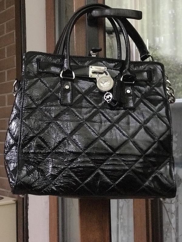 Michael Kors HAMILTON Black PATENT LEATHER Удобная, умещается ноут, и в очень красивом состоянии.