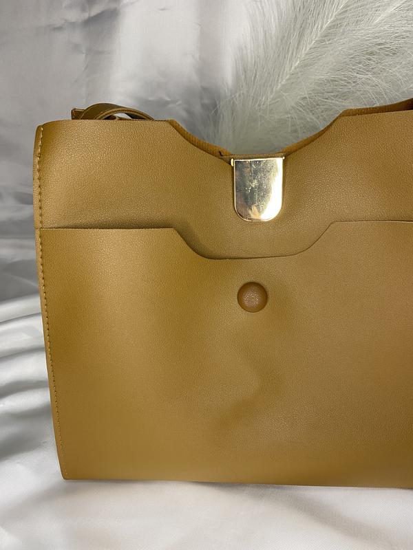 Колір: гірчичний Має всередині один головний відділ, та декілька маленьких Є ремінець Матеріал: еко-шкіра