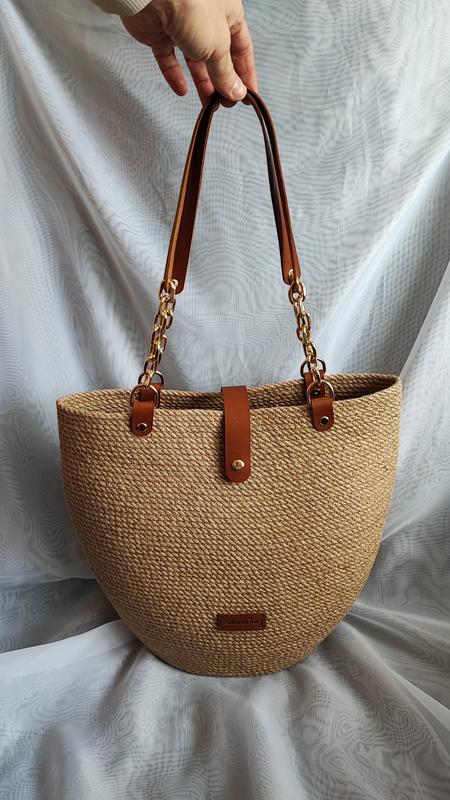 джутова сумка зі шкіряними ручками розмір 24х17, висота 32, верх 38 ручки 55 см ручки шкіра + цепочка (золото /нікель) клапан на магніту бливкавка кишенька забирай собі і ходи красивою з цією сумкою