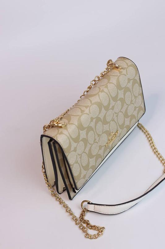 Coach mini klare crossbody beige/white Сумка выполнена из качественной эко кожи. В сумке три отделения. Подкладка из эко кожи. Плечевой ремень - цепочка со вставкой из эко кожи, которую можно носить извлеченным на всю длину, или составленным в два раза. Упаковка: брендовая коробка, замывок, документы. Цена 1899😍 Размер: 22х16х7 Есть полная передоплата и наложенный платеж.