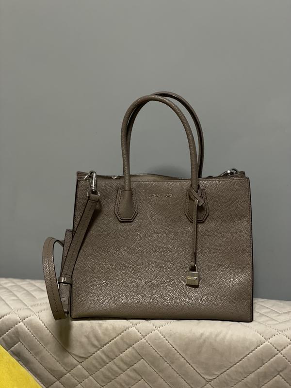 Сумка Michael Kors оригинал. В очень хорошем состоянии, мало ношена. Вместительная, не маленькая. Есть длинный ремешок. Открытая, на два отделения и посередине карман на молнии, внутри еще есть маленькие кармашки. Цвет даже не знаю как описать, не серый, не коричневый, чуточку светлее, чем на фото, приятный и нежный. Размер 31/25/14 см