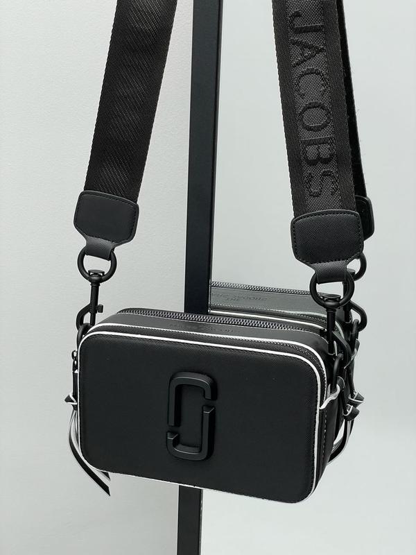 👜 Marc Jacobs The Snapshot Black on White Line (Арт: 02109) 💵: 1490 грн 📐 Размер: 21 х 12.5 х 7 см 🧵 Материал: Эко Кожа 🔎 Описание: Сумка изготовлена из экокожи и текстиля, логотип металлический. Внутри два небольших отделения, разделенных между собой стенкой из экокожи. На задней стенке сумки есть небольшой кармашек. Ремешок Marc Jacobs на карабинах, шириной 5 сантиметров и длиной от 63 до 105 сантиметров максимум.
