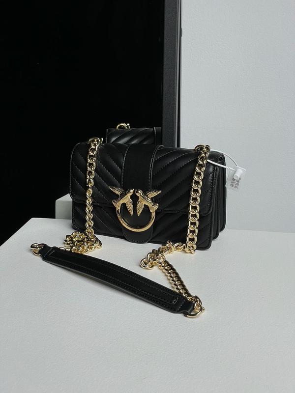 👜 Pinko Classic Mini Love Bag One Chevron Black/Gold (Арт: 99218) 💵 : 2400 грн 📐 Размер: 21 х 13 х 7 см 🧵 Материал: Кожа 🔎 Описание: Сумка выполнена из гладкой и мягкой кожи, прострочена. Внутри три отделения одно из которых на застежке, также есть небольшой карман. Подкладка у сумки из плотного текстиля. Фурнитура металлическая, брендированная. Цепочка для ношения через плечо с кожаной ручкой (фиксированной длины). Комплектуется в фирменной коробке, пыльнике, пакетике, также есть небольшие буклетики.