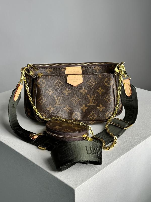 👜 (Арт: 99221) 💵 2400 грн 📐 Размер: 24 х 13 х 6 см 🧵 Материал: Кожа 🔎 Описание: Сумка выполнена из гладкой кожи с фирменной канвой. Внутри два отделения, также есть небольшой карман. Подкладка внутри из плотного текстиля. В комплекте есть небольшая золотая цепочка на карабинах. Ремешок текстильный, с регулируемой длиной.