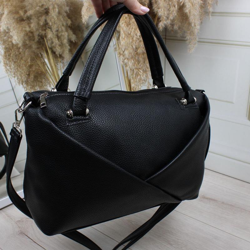 Стильная новинка 😍😍😍 Код д640 Материал: мягкая эко кожа, люкс качества 🔥 Размер: Высота 24 см, ширина по дну 30 см, дно 11см Сумка имеет одно большое отделение переделено карманом -перегонкой на молнии, боковой карман на молнии и открытый карман. Спереди два кармана на молнии. С тыльной строчки карман на молнии. Производство Украина Вмещает формат А4