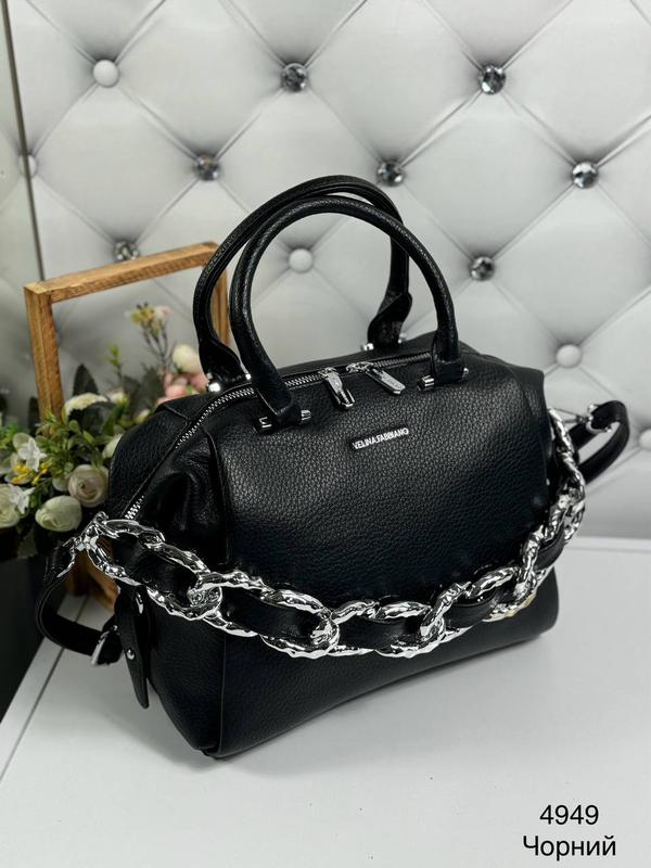 Стильная сумочка! Эко кожа 26,5 см ширина по дну. 23 см высота. 11.5 см глубина. 14 см высота ручек. В комплекте длинный ремень. Одно отделение на молнии, разделенное пополам отделением на молнии. Внутри карман на молнии и открытый карман. На обратной стороне карман на молнии.
