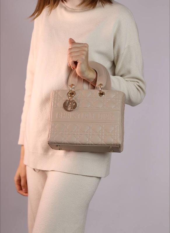CHRISTIAN DIOR lady beige Арт: 1015 Описание: 💎Размер: 24х19х9 💎Материал: Эко кожа Сумка выполнена из эко кожи с отстрочкой Cannage, имеет одно большое отделение, которое закрывается на застежку. Подкладка текстильная бордового цвета. Имеет боковой внутренний кармашек, который закрывается на молнию. Плечевой ремень изготовлен из эко кожи на карабинах и регулируется по длине от 70 см до 130 см. Можно носить в руке или через плечо. Фурнитура золотистого цвета. Упаковка: брендовая коробка, бумага, наполнитель, наклейка.