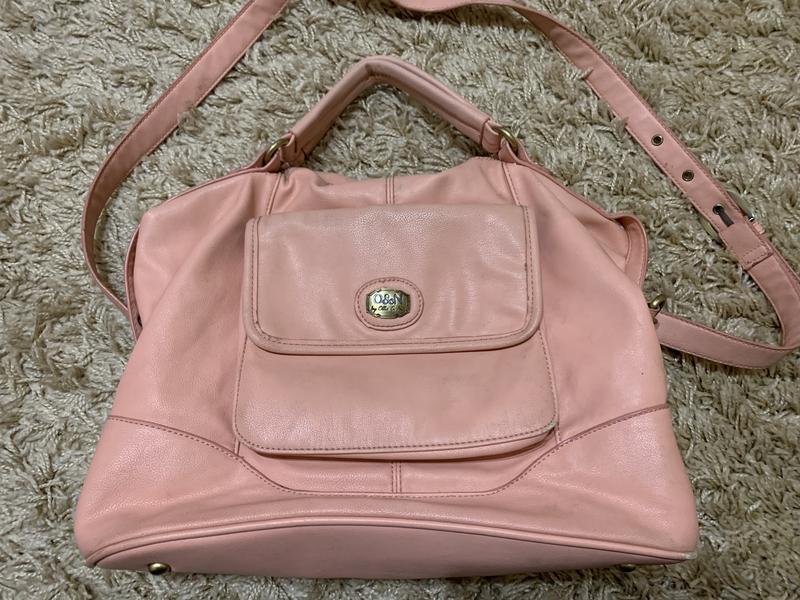 Классная пудровая сумка от О&N by Ollie & Nic вместительная, состояние 9/10, имеет пасок большой, можно регулировать, внутри замок 100 коттон подшивка Ширина36, высота 27