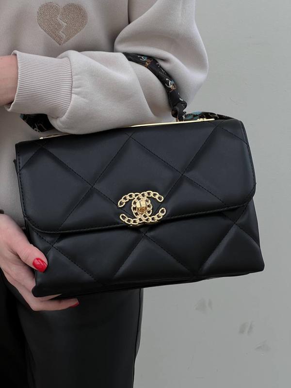 👜 Chanel Classic Black Gold Арт: 0254 Размер: 26 x 18 x 9 см Материал: эко кожа Описание: Люкс качество! Сумка выполнена из эко кожи, логотип и замочек металлические. Внутри два больших отделения, а третье меньшим размером на молнии. Подкладка сумки из плотного текстиля. На задней стенке сумки есть еще один небольшой кармашек. Ремешок составляет собой металлическую цепь вплетенный кожаный ремешок, длина 120 см. Бесплатный комплект: брендовая коробка + упаковочная бумага. Платный комплект +160 грн: брендовый пакет, пыльник и набор документов.